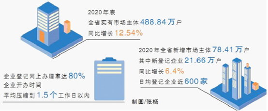 湖南日报·新湖南客户端2月25日讯(记者 刘永涛 胡盼盼 通讯员 易为)“手续简单,跑的路少了!”近日,杜福田和朋友新成立湖南金铁龙环保科技有限公司,从注册成立到拿到营业执照,线上“一网通办”,让他感慨“真快”。 杜福田的经历是湖南营商环境优化的一个缩影。湖南省市场监管局统计显示,2020年全省新增市场主体78.41万户,其中新登记企业21.66万户,同比增长6.4%,日均登记企业近600家。2020年底,全省实有市场主体488.84万户,同比增长12.54%。 全省深化“放管服”改革,营商环境优化,市场活力迸发。加快市场主体准入制度改革,企业开办“一网通办”、涉企行政审批事项跨省通办,有效满足企业和群众异地办事需求。企业登记网上办理率达80%,企业开办时间平均压缩到1.5个工作日以内。 全面推行企业注销便利化改革。对国家企业信用信息公示系统(湖南)和企业登记业务系统部分功能进行升级改造,支撑企业在线办理注销相关业务。企业注销“一网”服务平台上线运行,各有关部门注销业务“信息共享,同步指引”,实现企业注销“一网”服务,有效解决企业退出难的问题。 省市场监管局介绍,全省推进“证照分离”“多证合一”“一件事一次办”“三集中三到位”改革,实现市场监管行政许可“查一个目录、去一个窗口、登一个网站、录一次数据”。 推进电子营业执照改革,推行无纸全程电子化企业登记。申请人可以领取手机微信版、支付宝版电子营业执照,在保留窗口登记的同时,实现各类型企业的设立、变更、备案、注销等各个业务环节均可通过互联网办理。