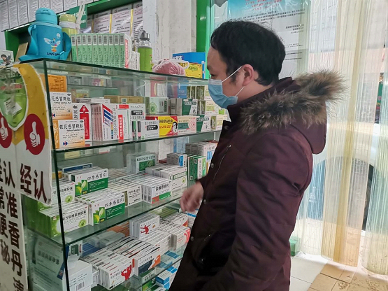 麻志军说。 每天巡查时,他都不厌其烦提醒市场管理人员和经营者,每天要对摊位进行清洗、消毒,做好相关记录,严格落实“一日一清洗、一日一消毒、一日一巡视”制度。同时,提醒消费者注意自我保护“不吃野味,不买活禽。出门戴好口罩,做好个人防护。” 县城内每个超市也都布满了麻志军的足迹,每日对食用农产品、粮食加工品、食用油、调味品、肉制品、乳制品、蛋制品等人民群众日常生活必需的物价进行监督检查,密切关注价格异动情况,坚决打击借疫情之机,捏造涨价信息、串通涨价、哄抬物价、囤积居奇等违法行为。 目前花垣县各大超市和农贸市场生活必需品供应充足,货源稳定,价格平稳,完全可以满足群众生活所需。 李剑:铁腕整治违法行为 李剑在药店检查。 李剑,花垣县市场监督管理局药品医疗器械监督管理股股长。 “喂,李剑,刚刚接到一起高价销售一次性口罩的投诉,请你立即带队去处理”。腊月二十九,他正在家中准备年夜饭,接到电话后,他向家人简单的交待几句,立即与同事一起奔赴现场,经过几个小时的调解,圆满解决了投诉人的诉求,受到投诉人的好评。 在防护措施紧缺的艰苦条件下,李剑戴上口罩便与其他同志一起并肩奋战,加强流通环节相关应急处置药品、试剂、医疗器械和防护用品的质量监督、检验检测和供应保障。 人员流动的农贸市场、贴近民生的超市药店、复杂繁多的餐馆小店……都有李剑忙碌的身影。 截止2月11日,他参与检查药品销售市场主体313家次,与25家协议零售药店签订《市场价格稳定承诺书》,严禁无照无证经营、不明码标价、哄抬物价、囤积居奇、不合理高价、假冒伪劣、虚假宣传、商品搭售等违法行为;要求城区内各大药店、诊所落实购买发烧、感冒药品身份信息登记;受理相关投诉举报17件,对哄抬物价,假冒伪劣行为进行严厉打击,查处涉嫌销售问题口罩经营主体6家,暂扣涉嫌的问题口罩16439个,货值49012元,立案6起。 (供稿:花垣县市场监管局)