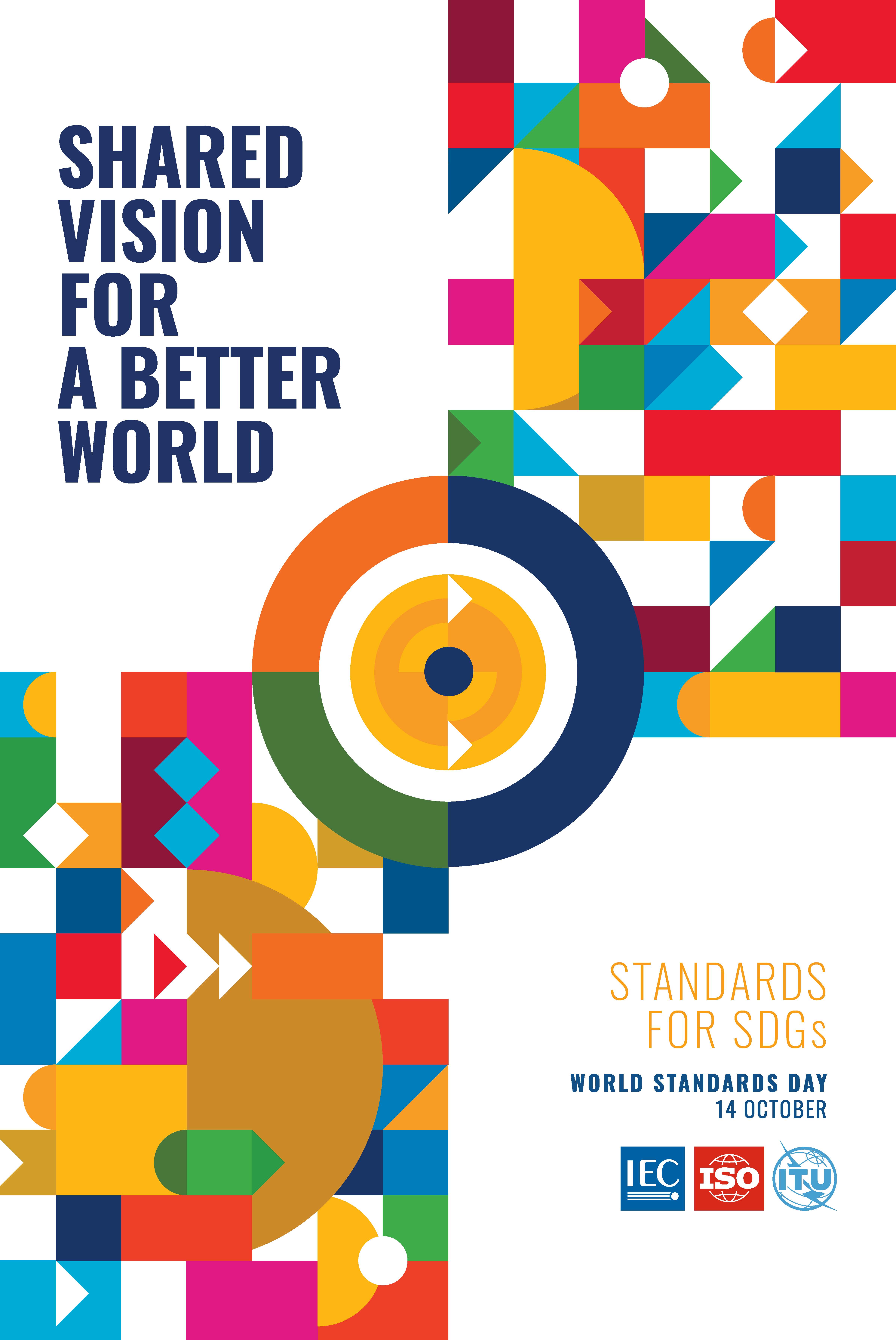 热烈庆祝第56届世界标准日 2025年世界标准日祝词及海报——美好世界的共同愿景: 增强伙伴关系,共促可持续发展 可持续发展目标宏大而深远,旨在化解社会失衡、推动经济可持续发展,并减缓气候变化。为实现这些目标,亟需众多公共与私营部门紧密协作,并充分利用包括国际标准和合格评定在内的所有工具。 抗击全球疫情的艰巨斗争表明,必须以包容性的方式实现可持续发展目标,这将使社会更具韧性,并促进其公平与公正。今天,诚邀您与我们携手并肩,共负使命,彰显可持续发展目标在重建美好家园中的重要性。在这一过程中,标准的作用比以往任何时候都显得更为关键。 协作是整个标准体系构建的基石,这充分证明了合作所蕴含的巨大能量,深刻诠释了“团结之力大于个体之和”的坚定信念。通过携手共进,我们能够为人们提供切实可行的解决方案以直面可持续发展挑战。 秉承这一精神,多年来我们一直开展“世界标准日”系列活动,持续展示国际标准如何以多种途径推动成功实现可持续发展目标。 让我们团结一致,共同努力,加快实现联合国2030年可持续发展目标,以标准助力可持续发展,实现“美好世界的共同愿景”。 2025世界标准日中国海报 2025世界标准日国际海报
