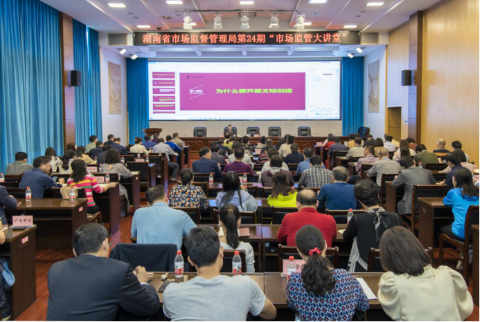 9月22日下午,省市场监管局第24期“市场监管大讲堂”开讲。省委宣传部文明一处处长李力明作《关于做好文明创建工作的几个问题》专题辅导,省局党组成员、副局长丁珍良主持。 李力明从为什么要开展文明创建、文明创建要突出思想道德内涵、文明创建必须常态化长效化等三个方面就新时代文明单位创建工作进行了全面辅导,讲课内容丰富、主题鲜明、深入浅出,具有很强的指导性、可操作性。 省市场监管局组建以来,党组高度重视文明创建工作,顺应市场大监管格局新形势新要求,坚持“五化方向”,坚定“五大理念”,坚守“五大目标”,始终以党的政治建设为统领,坚决做到“两个维护”;始终以筑牢理想信念为基石,强化思想理论武装;始终以加强组织建设为支撑,强固基层党建基础;始终以转作风树新风为目标,培塑精神文明家园;始终以党风廉政建设为保障,推进队伍作风转变;始终以践行核心价值观为主线,营造文明和谐健康的机关氛围;始终以坚持为民服务为宗旨,提升履职尽责能力;始终以强化组织领导为后盾,提升创建质量水平。在基础设施建设、激发创建活力、推进示范带动、营造创建声势、提升市场监管形象上实现了新突破,取得了新成效。目前,省局文明创建各项工作正有条不紊、如火如荼进行。 省局在家局领导,省纪委省监委驻局纪检监察组,局机关各处室、后勤服务中心、省局机关院内直属单位全体人员,省局直属单位全体班子成员和文明创建工作专干参加讲座。(供稿:机关党委 图/周欣)
