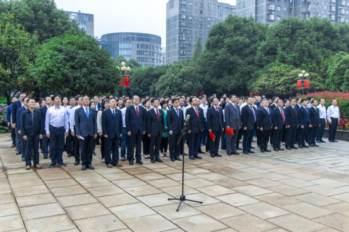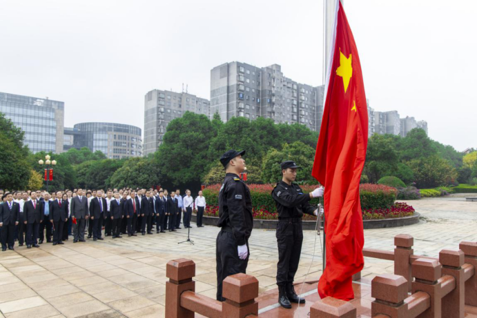 9月30日上午8点30分,在中华人民共和国成立71周年国庆节即将到来之际,省市场监管局隆重举行迎国庆升国旗仪式。省市场监管局党组书记、局长向曙光出席并讲话。 向曙光指出,明天,我们就将迎来伟大祖国71周年华诞;今天,我们在这里隆重集会,升国旗、唱国歌,共同庆祝这一盛大节日,就是要进一步激发党员干部的爱国情、报国志、强国梦,在实现中华民族伟大复兴中贡献智慧力量。今后,要把国庆前举行升旗仪式作为制度固定下来,持续增强党员干部的自信心和自豪感。 向曙光指出,砥砺耕耘,春华秋实。1921年,中国共产党在血雨腥风中诞生,以星星之火起燎原之势,领导全国人民浴血奋战,最终实现民族独立和人民解放。1949年10月1日,开国领袖毛泽东向世界庄严宣告中华人民共和国成立,中华民族就此开启了新的历史纪元。改革开放以来,在以邓小平、江泽民、胡锦涛、习近平同志为主要代表的中国共产党人的坚强领导下,中国人民同心同德、艰苦奋斗,创造了波澜壮阔、惊天动地的东方奇迹。特别是党的十八大以来,以习近平同志为核心的党中央迎难而上、开拓进取,以历史性成就、历史性变革,推动中国特色社会主义进入新时代,迎来了实现中华民族伟大复兴的光明前景。2020年,我们党团结带领全国各族人民,进行了一场惊心动魄的抗疫大战,经受了一场艰苦卓绝的历史大考,创造了人类同疾病斗争史上又一个英勇壮举。 向曙光指出,回首往昔,这是何其辉煌的成就;展望未来,这是何其壮丽的征程!今天的中国,中国特色社会主义道路、理论、制度、文化焕发出强大生机活力;今天的中国,经济实力显著进步、综合国力不断增强、人民生活水平持续改善;今天的中国,正昂首阔步迈向世界舞台中央! 向曙光强调,当前世界百年未有之大变局正加速演进,国内改革发展稳定任务艰巨繁重。我们要更加紧密地团结在以习近平同志为核心的党中央周围,增强“四个意识”、坚定“四个自信”、做到“两个维护”,始终坚持“五大方向”、坚守“五大理念”、坚定“五大目标”,于危机中育新机,在变局中开新局,为建设富饶美丽幸福新湖南、实现中华民族伟大复兴的中国梦不懈奋斗。 向曙光最后说,祝福伟大的祖国明天更美好,祝福湖南市场监管事业明天更美好,祝福各位同仁明天更美好! 在家的省局领导、新晋二级巡视员,驻省局纪检监察组、省局机关各处室四级调研员以上干部,机关院内直属单位主要负责人参加升国旗仪式。(供稿:机关党委 邝方 图/周欣)