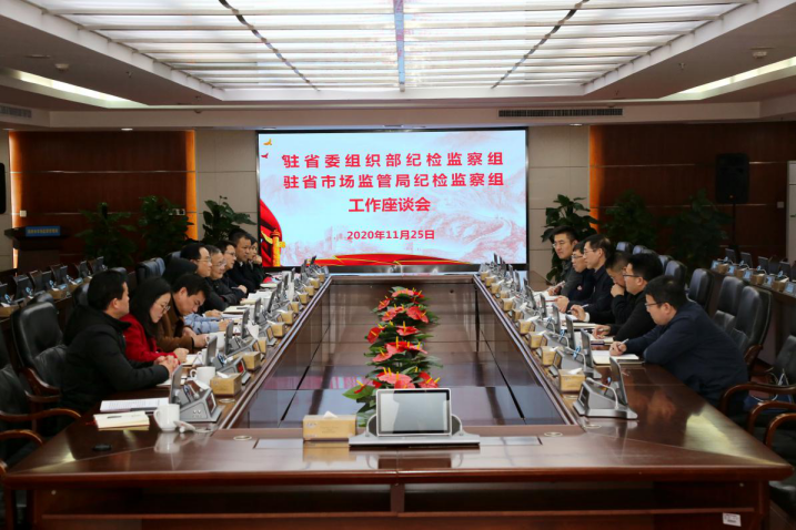 11月25日上午,驻省委组织部纪检监察组组长谢立三率队来省市场监管局调研座谈党风廉政建设工作。省市场监管局党组书记、局长向曙光,驻省市场监管局纪检监察组组长、局党组成员秦继红参加座谈会。 会上,秦继红详细介绍了驻省市场监管局纪检监察组自成立以来的工作情况及成效,并结合具体工作实例,就强化政治监督、创新日常监督、推进案件查办、加强自身建设等与驻省委组织部纪检监察组进行了深入交流,提出意见和建议。 会上,谢立三重点介绍了驻省委组织部纪检监察组紧盯“关键少数”,创新监督方式,推动主体责任与监督责任同向发力、同频共振的具体经验和做法。他指出,派驻纪检监察组要自觉把各项工作放到党和国家工作大局中来思考、谋划、推进。特别是在加强政治监督,推进政治监督具体化常态化的过程中,要始终做到围绕中心、服务大局,紧扣驻在部门职责使命开展监督。 向曙光向省委组织部及驻省委组织部纪检监察组对省市场监管局工作的大力支持表示感谢。他指出,省市场监管局自成立以来,始终把党的政治建设摆在首位,高标准创造性开展机关党建工作,如开展“市场监管大讲堂”、探索“行纪”衔接等,推动管党治党不断深化,单位政治生态持续好转。但是,省市场监管局机构职能庞大、队伍结构老化、廉政风险集中,一些积压的问题仍有待解决,希望省委组织部及驻省委组织部纪检监察组在今后的工作中予以更多支持。(供稿:驻局纪检监察组)