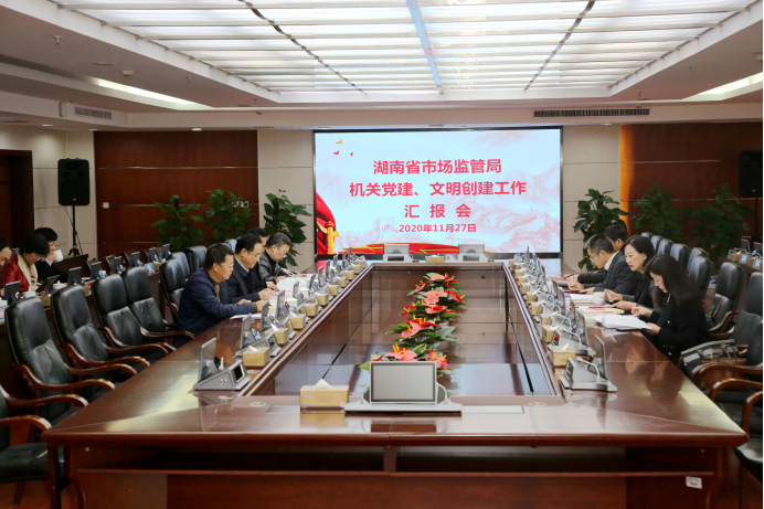 根据省直机关工委部署安排,11月27日,省直机关工委委员、省直工会主席杨立勇一行4人对省市场监管局进行党建绩效考核、文明创建工作检查验收。省市场监管局党组书记、局长向曙光陪同检查并主持汇报会。 杨立勇一行实地考察了省局登记注册服务大厅、综合楼小礼堂(道德讲堂)、职工理发室、职工之家、青年之家、综合楼党员活动室、图书室、机关党建活动室等场所,并查阅了资料台账,进行访谈问答。 在省局机关党建、文明创建工作汇报会上,党组成员、副局长杨亲鹏代表党组汇报相关工作。随后,杨立勇对省局机关党建和文明创建工作进行点评,给予高度评价。他指出,省市场监管局是新局、大局、党建局、改革局、民生局。自组建以来,党组高度重视机关党建和文明创建工作,党建和创建工作氛围浓,资料台账整齐规范,党员干部精神状态良好,环境绿化亮化优美。同时,党建与业务工作深度融合,相互促进,坚持“五大方向”“五大理念”“五大目标”,各项工作创新发展,实现了机关党建、文明创建与市场监管改革发展双促进共提高,为服务湖南经济社会发展作出了积极贡献。 向曙光指出,在年末岁尾各项工作收官繁忙之际,省直机关工委考核组同志莅临省局考核指导工作,充分体现了对市场监管事业发展的高度重视,对机关党建和文明创建工作的高度关心。在市场监管局诞生那天起,省直机关工委就在各方面,尤其是党建考核、文明创建、工青妇组织建设等,给予省局大力支持帮助,有力保证了机构改革顺利推进、平稳落地。在此,代表省市场监管局党组对省直机关工委考核组同志表示热烈欢迎和衷心感谢。 向曙光表示,下一步,我们将始终坚持以习近平新时代中国特色社会主义思想为指导,深入学习贯彻党的十九大和十九届二中、三中、四中、五中全会精神,全面落实新时代党的建设总要求和习近平总书记考察湖南重要讲话精神,对标省直机关工委的要求,加强“硬件”和“软件”建设,进一步提高机关党建、文明创建工作的质量和水平,推动市场监管治理体系和治理能力现代化,推动市场监管事业高质量发展,为加快建设富饶美丽幸福新湖南提供坚强保证。 省局领导李驰、欧阳黎明,驻局纪检监察组、省局有关处室负责人参加汇报会。(供稿:机关党委 邝方 图/许英)