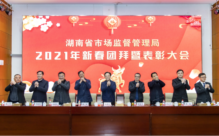 2月18日上午,春节后上班第一天,省市场监管局召开2021年新春团拜暨表彰大会,全体局领导向广大干部职工表达新春祝福,表彰省局先进集体和先进个人,并动员干部职工收心归位、抖擞精神,在接续奋斗中书写新的时代华章。省局党组书记、局长向曙光在大会上号召全体干部职工充分发扬“为民服务孺子牛、创新发展拓荒牛、艰苦奋斗老黄牛”精神,在实施“三高四新”战略、建设现代化新湖南中走在前列、干在实处,以优异成绩迎接建党100周年。