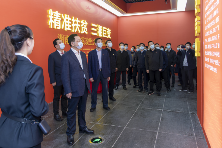 在党史学习教育从开局向纵深推进的关键阶段,4月26日上午,省市场监管局党组书记、局长向曙光带领全体党员来到湖南美术馆,组织参观“精准扶贫 三湘巨变”湖南省脱贫攻坚大型成就展。杨亲鹏、丁珍良、段志雄、李丁、曾砥平等省局领导参加。 跟随讲解员的脚步,全体党员依次参观了“历史伟业”“首倡之为”“磅礴力量”“希望田野”四个篇章,回顾了党的十八大以来精准扶贫的重大决策部署,聆听了湖南党员干部、社会各界和人民群众在脱贫攻坚战中的典型事迹和感人故事,深刻感受湖南作为精准扶贫首倡之地的首创之为。 在《贫困记忆》一组黑白照片前,在《致敬英模》扶贫干部照片前,向曙光一行驻足许久:“为有牺牲多壮志,敢教日月换新天。唯有奋勇无前的付出,才有翻天覆地的变化。我们要发扬在脱贫攻坚中养成的艰苦奋斗精神,继续投身到乡村振兴中去。” “精准扶贫”提出八年来,全省682万建档立卡贫困人口全部脱贫,51个贫困县全部摘帽,6920个贫困村全部出列,湖湘儿女用勤劳和智慧书写了脱贫攻坚的精彩答卷,形成了首倡之地首倡之为的“湖南样本”。 脱贫攻坚战场也有全省市场监管系统的奉献。省市场监管局派出驻村工作队深入新邵县大坻村开展扶贫工作,抽调人员组建省脱贫攻坚常态化联点督察第28组,督促新邵县整改脱贫攻坚各类问题3000余个,确保脱贫质量稳步提升,新邵县委被评为“全国脱贫攻坚先进集体”。 一张张图片、一组组数据,无不彰显湖南脱贫攻坚取得的成就,在省市场监管局参观人员中引发热烈反响。“看稻菽千重浪,芙蓉国里尽朝晖。”省药监局药品流通处副处长虞红表示,将坚持学习党史与推动工作相结合,扎实开展“我为群众办实事”实践活动,为促进全省生物医药产业高质量发展作出更大贡献。 参观中,向曙光说,我们今天来参观全省脱贫攻坚大型成就展,与省局党组理论学习中心组开展的党史学习教育第二次专题学习是一体的,就是要从三湘大地发生的巨变中,感受习近平新时代中国特色社会主义思想的真理伟力,感受党的领导和社会主义制度的巨大优越性,进一步用信仰信念信心照亮奋斗之路。 向曙光指出,要全面贯彻落实习近平总书记在全国脱贫攻坚总结表彰大会上的重要讲话精神,深刻领会伟大脱贫攻坚精神,结合市场监管职能职责,团结一心、接续奋斗,为巩固拓展脱贫攻坚成果、全面推进乡村振兴、建设现代化新湖南贡献市场监管的力量。 省纪委监委驻局纪检监察组、机关各处室、直属各单位主要负责同志和党员代表,省药监局党员代表参加活动。(供稿:新闻宣传处 周闯 图/周欣)