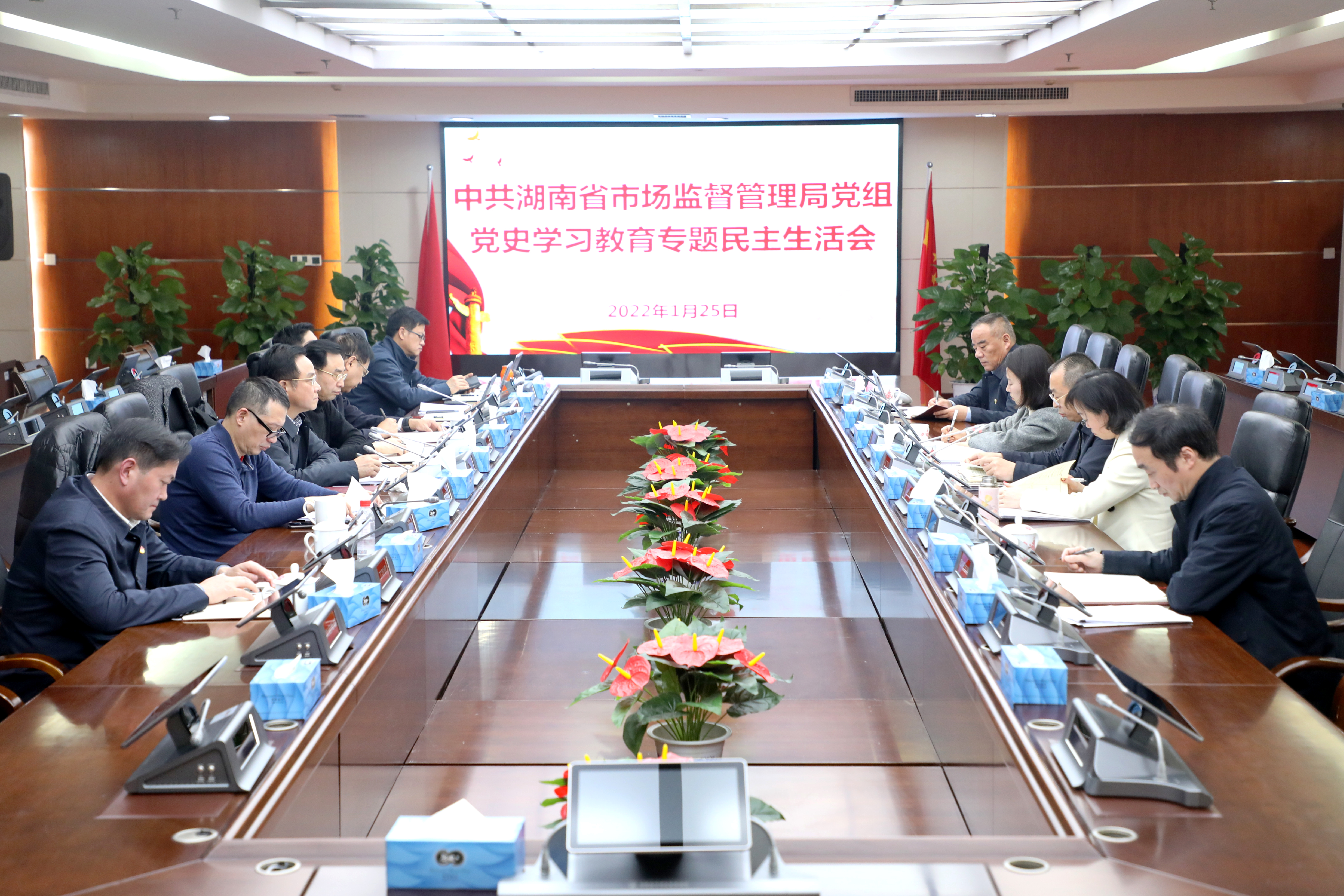根据中央统一部署和省委要求,1月25日,经报请省纪委监委、省委组织部和省委党史学习教育巡回指导组同意,省市场监管局党组召开党史学习教育专题民主生活会。会议以中央政治局、省委常委会专题民主生活会为标杆,紧扣“大力弘扬伟大建党精神,坚持和发展党的百年奋斗历史经验,坚定历史自信,践行时代使命,厚植为民情怀,勇于担当作为,团结带领人民群众走好新的赶考之路”主题,坚持理论联系实际,坚持问题导向,深入进行党性分析,严肃认真开展批评和自我批评。 省局党组书记、局长向曙光主持会议并作总结讲话。党史学习教育省委第二巡回指导组组长高飞跃到会指导并作点评讲话。 对开好此次专题民主生活会,省局党组和党组成员严格按照中央通知要求和省委部署,专题学习习近平总书记重要讲话重要指示和中央、省委有关文件会议精神,深入研讨交流,广泛征求意见,全面谈心谈话,认真撰写对照检查材料,扎实做好各项准备工作,为开好专题民主生活会打下了坚实基础。 会上,向曙光代表省局党组班子作对照检查,并带头作个人对照检查,省局党组成员逐一进行对照检查,相互之间严肃认真地开展批评,实事求是、直面问题,体现了自我革命精神和从严从实要求。 向曙光指出,在党史学习教育省委第二巡回指导组的指导和帮助下,此次民主生活会圆满完成各项议程,达到了锤炼党性、净化灵魂的预期目的。要以此为新起点,巩固拓展党史学习教育成果,弘扬伟大建党精神,持续在学史明理、学史增信、学史崇德、学史力行上下功夫,以工作的实际成效推动市场监管事业高质量发展。 向曙光要求,要在坚持政治引领上作表率,不断提升党建水平。持续推进“三表率一模范”机关建设,深化高质量党建引领行动,推动党史学习教育进一步走深走实。要在深化理论武装上悟真理,持续补足精神之钙。进一步抓好学习型党组织建设,推动习近平新时代中国特色社会主义思想在市场监管部门落地生根、开花结果。要在狠抓问题整改上求实效,全面补齐短板弱项。进一步细化问题清单,完善整改措施,落实整改责任,做好整改“后半篇文章”。 向曙光强调,省局党组成员要讲政治、讲情怀、讲担当、讲自律,始终保持永不懈怠的精神状态和一往无前的奋斗姿态,在奋力干事创业上见真章,带领全体党员干部全面落实“三高四新”战略定位和使命任务,立足新发展阶段,完整、准确、全面贯彻新发展理念,构建新发展格局,推动高质量发展,坚持“五大方向”,坚守“五大要求”,坚定“五大目标”,稳中求进、积极作为,不断优化营商环境,强化政策供给,夯实基础支撑,推进市场治理体系和治理能力现代化,为全面建设社会主义现代化新湖南贡献市场监管力量,以优异成绩迎接党的二十大胜利召开。(图/文 新闻宣传处 周闯)