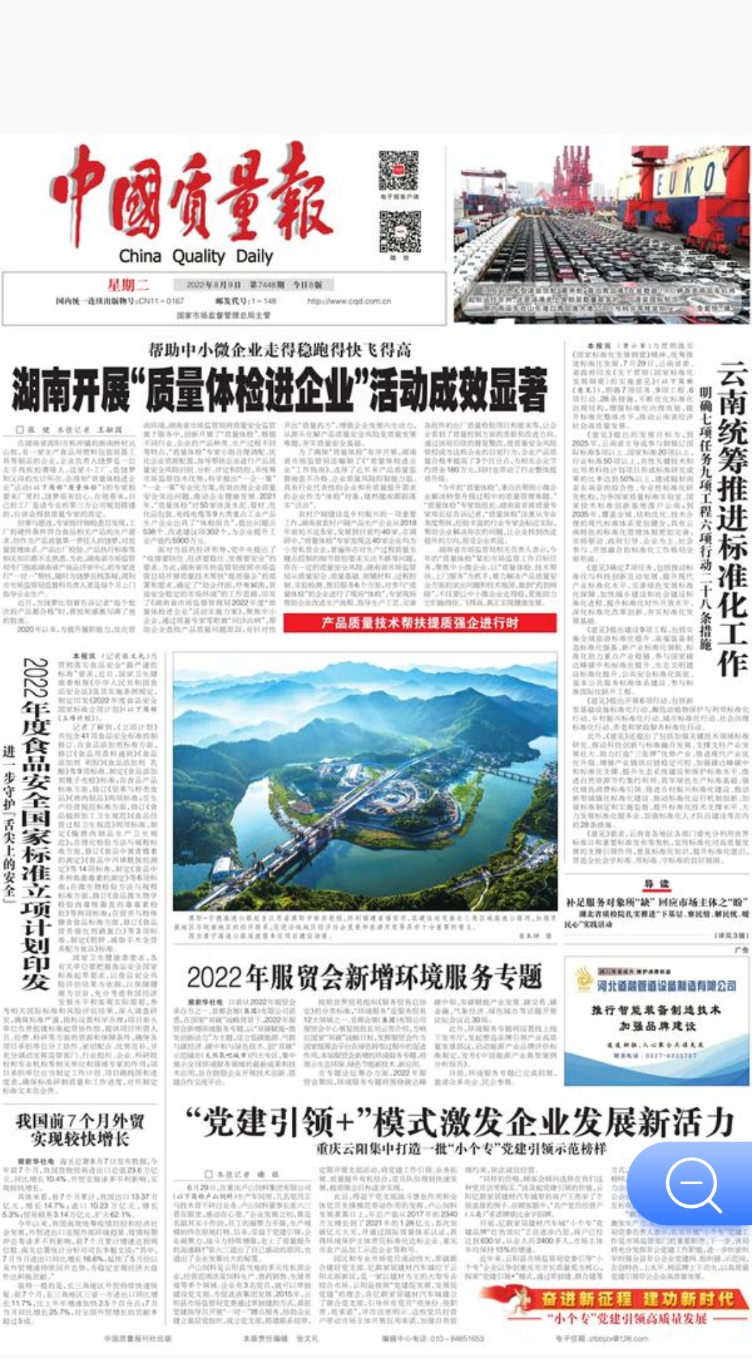 帮助中小微企业走得稳跑得快飞得高 湖南开展“质量体检进企业”活动成效显著 在湖南省浏阳市枨冲镇的新南桥村丛山组,有一家生产食品用塑料包装容器工具等制品的企业,企业负责人饶梦是一位左手残疾的聋哑人。这家小工厂,是饶梦和父母的生计所在。在得知“质量体检进企业”活动(以下简称“质量体检”)的专家组要来厂里时,饶梦很有信心。在他看来,自己的工厂是请专业的第三方公司规划搭建的,应该会得到质量专家的肯定。 但事与愿违,专家组仔细检查后发现,工厂的硬件条件符合食品相关产品的生产要求,但作为产品质量第一责任人的饶梦,对质量管理体系、产品出厂检验、产品执行标准等相关知识都不太熟悉。为此,湖南省市场监管局专门指派湖南省产商品评审中心的专家进行“一对一”帮扶,随时为饶梦在线答疑,浏阳市市场监管局监督科负责人更是每个月上门指导企业生产。 近日,当饶梦比划着告诉记者“每个批次的产品都合格”时,喜悦和感激写满了他的脸庞。 2020年以来,为提升履职能力,优化营商环境,湖南省市场监管局将质量安全监管寓于服务中,创新开展了“质量体检”。根据不同行业、企业的产品种类、生产过程不同等特点,“质量体检”专家小组合理调配、优化企业资源配置,指导帮扶企业进行产品质量安全风险识别、分析、评定和防控,并统筹市场监管技术优势,科学提出“一企一策”“一业一策”专业化方案,有效治理企业质量安全突出问题,推动企业健康发展。2021年,“质量体检”对50家涉及水泥、管材、危化品包装、电线电缆等9大类重点工业产品生产企业出具了“体检报告”,提出问题点538个、改进建议项302个,为企业提升工业产值约5900万元。 面对当前的经济形势,党中央提出了“疫情要防住、经济要稳住、发展要安全”的要求。为此,湖南省市场监管局按照市场监管总局开展质量技术帮扶“提质强企”的部署和要求,确定了“助企纾困,纾难解困,营造安全稳定的市场环境”的工作思路,印发了《湖南省市场监督管理局2022年度“质量体检进企业”活动实施方案》,聚焦中小企业,通过质量专家零距离“问诊治病”,帮助企业查找产品质量问题原因,有针对性开出“质量药方”,增强企业发展内生动力,从源头化解产品质量安全风险及质量发展难题,夯实质量安全基础。 为了确保“质量体检”有序开展,湖南省市场监管局还编制了《“质量体检进企业”工作指南》,选择了近年来产品质量监督抽查不合格、企业质量风险控制能力弱、具有行业代表性的企业和有质量提升需求的企业作为“体检”对象,建档建库跟踪落实“诊治”。 农村户厕建设是乡村振兴的一项重要工作,湖南省农村户厕产品生产企业从2018年前的不足5家,发展到目前约40家。在调研中,“质量体检”专家发现这40家企业均为小型私营企业,普遍存在对生产过程质量关键点控制的细节管控要求关注不够等问题,存在一定的质量安全风险。湖南省市场监管局从质量安全、质量基础、原辅材料、过程控制、实验检测、售后服务6个方面,对参与“质量体检”的企业进行了现场“体检”,专家现场帮助企业改进生产流程、指导生产工艺、完善各组件的出厂质量检验项目和要求等,让企业看到了质量控制方面的差距和改进方向。通过该局后续的督促整改,使质量安全风险管控成为这些企业的自觉行为,企业产品质量合格率提高了3个百分点,为相关企业节约资金180万元,同时也带动了行业整体提质升级。 “今年的‘质量体检’,重点在帮助小微企业解决转型升级过程中的质量管理难题。”“质量体检”专家组组长、湖南省首席质量专家郑长征告诉记者,“质量体检”注重从专业角度帮扶,经验丰富的行业专家会贴近实际,帮助企业解决存在的问题,让企业找到改进提升的方向,很受企业欢迎。 湖南省市场监管局相关负责人表示,今年的“质量体检”紧扣市场监管工作目标任务,聚焦中小微企业,以“质量体检、技术帮扶、上门服务”为抓手,着力解决产品质量安全方面的突出问题和技术瓶颈,做到“药到病除”,不仅要让中小微企业走得稳,更能助力它们跑得快、飞得高,真正实现健康发展。 □ 张健 本报记者 王融国
