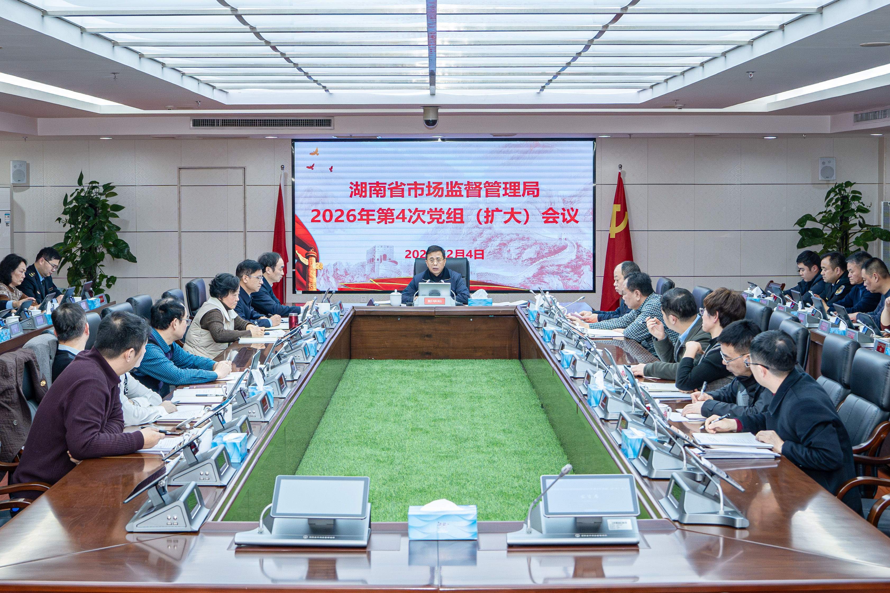 2月4日,省市场监管局2026年第4次党组(扩大)会议召开,传达学习习近平总书记近期重要讲话和重要文章精神,落实国务院和省委、省政府会议部署,研究春节期间市场监管各项重点工作。省局党组书记、局长彭华松主持会议。 会议强调,习近平总书记在主持中央政治局会议、中央政治局第二十四次集体学习时发表了重要讲话,在《求是》杂志上发表重要文章,为市场监管部门抓好当前各项工作指明了前进方向。省局系统各级党组织要切实加强自身建设,认真履行全面从严治党主体责任,带头树立和践行正确政绩观;积极探索发展未来产业,加强质量基础设施建设,优化高价值发明专利布局,促进科技创新和产业创新深度融合;积极助力金融监管工作,在登记注册、事中事后监管(信用监管)、广告监管、质量基础设施建设等方面探索强化监管机制,助力维护金融领域秩序。 会议指出,要认真学习贯彻全面从严治党、推进党风廉政建设和反腐败斗争系列会议精神,坚持用改革精神和严的标准管党治党,狠抓以案促改促治,加强“局组联动”,纵深推进正风肃纪反腐,全面推进清廉市监建设。要按照“4+10”整体布局,立足市场监管职能职责,超常规推进群众身边不正之风和腐败问题集中整治,坚持办案开路,持续固强补弱,促进长效治理。要严格落实中央八项规定及其实施细则精神,加强廉政教育和监督检查,畅通监督举报渠道,筑牢拒腐防变的思想防线,坚决守牢春节期间廉洁防线。 会议强调,要常态长效开展习近平总书记对湖南工作和市场监管工作重要指示批示贯彻落实情况“回头看”,建立督办制度,做到“事事有回应,件件有着落”。要全面加强系统内部审计工作,健全内审机制,发挥监督作用,提高审计质效,以高质量审计监督护航市场监管“十五五”开好局、起好步。 会议指出,要深入学习贯彻习近平总书记关于做好新时代党的统一战线工作的重要思想,加强思想政治引领,突出抓好民营经济信心提振、助力经济社会发展、非公党建引领、许可登记把关、重点广告监测等相关工作。 会议强调,马年新春佳节将至,全省市场监管系统要锚定“三高四新”美好蓝图,牢固树立“监管为民”政绩观,加强工作统筹,狠抓重要民生商品服务稳价保质工作,强化线上线下一体化监管,维护好节日期间市场秩序和消费环境;要强化风险排查,加强值班值守,压实基层一线责任,守住“三品一特”安全底线,守牢纪律规矩红线,保障人民群众安心过节。 会议还研究了其他工作。(图/文 新闻宣传处)