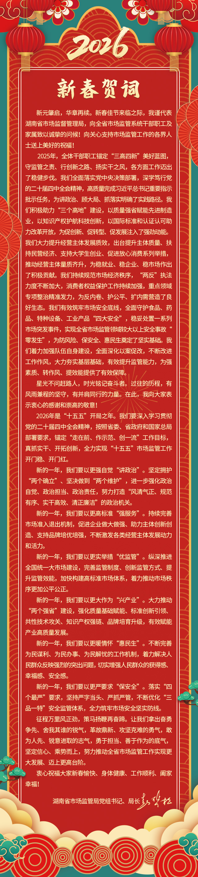 征程万里风正劲 策马扬鞭再奋蹄 | 湖南省市场监督管理局2026新春贺词