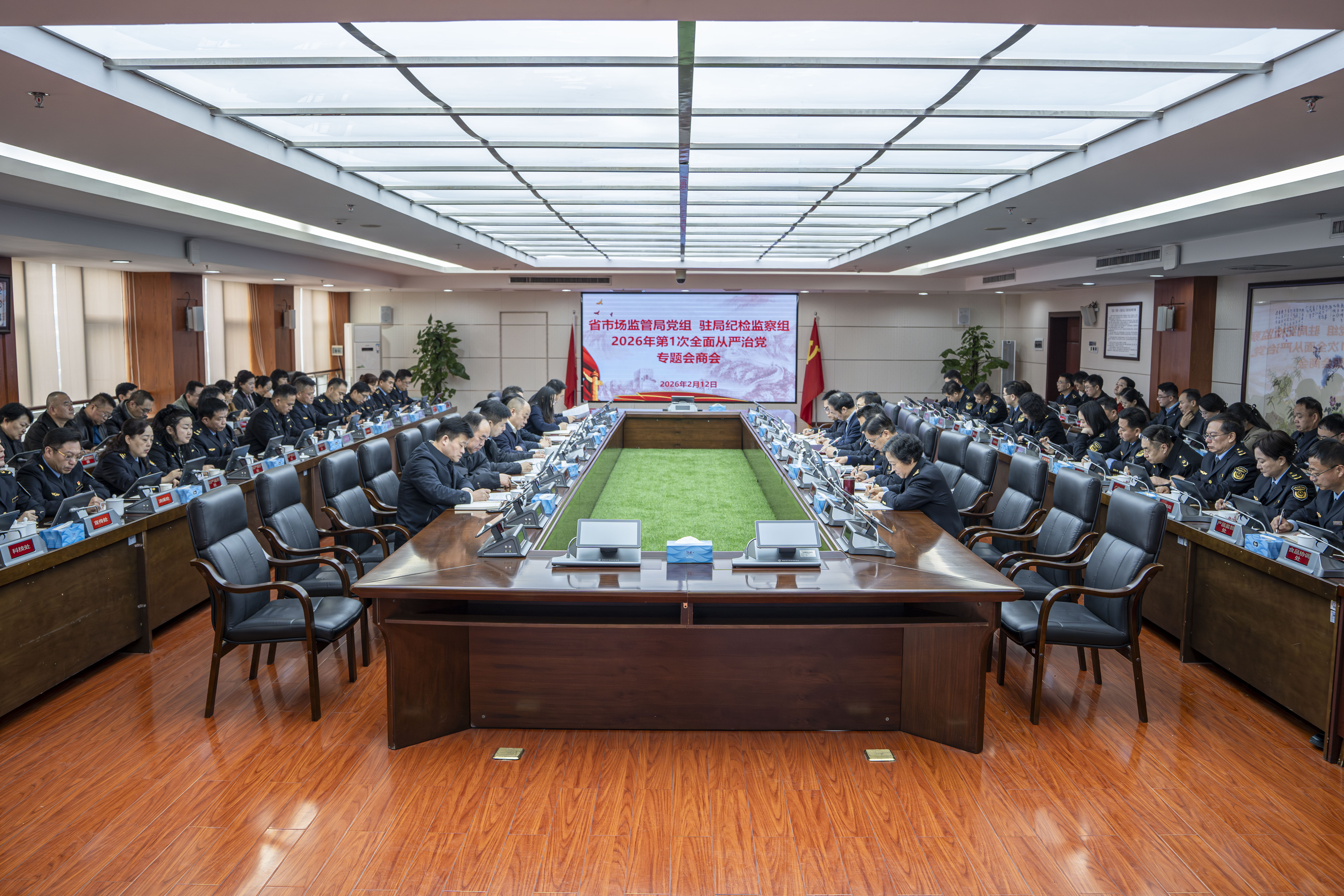 2月12日,省市场监管局党组与省纪委监委驻省局纪检监察组召开2026年第1次全面从严治党专题会商会,深入学习贯彻习近平总书记在中央纪委五次全会上的重要讲话精神,认真落实中央纪委五次全会、十二届省纪委六次全会部署,专题研究全面从严治党工作,通报2025年有关情况,部署2026年重点工作。省局党组书记、局长彭华松主持会议并讲话。 会议指出,2025年以来,省市场监管局党组坚持以习近平新时代中国特色社会主义思想为指导,深入贯彻党的二十大和二十届历次全会精神,认真落实中央纪委、省纪委全会部署,坚决扛牢全面从严治党主体责任,与驻局纪检监察组同频共振、同向发力、同题共答,一手抓中心工作,一手抓以案促改,全面修复政治生态,加强清廉市监建设,推动行风作风转变,着力打造风清气正、规范有序、实干高效、清正廉洁的模范机关。 会议强调,要深入学习贯彻习近平总书记关于党的建设、党的自我革命的重要思想,认真贯彻落实中央纪委全会部署和省委、省纪委监委要求,深刻领悟“两个确立”的决定性意义,增强“四个意识”、坚定“四个自信”、做到“两个维护”,充分运用好专题会商成果,强化全面从严治党主体责任和监督责任,增强全面从严治党工作合力,为湖南市场监管事业高质量发展提供坚强纪律保障。 会议要求,要深化政治机关建设,加强理论武装,树立和践行正确政绩观,推进模范机关建设,提高基层党组织的战斗力;要压实管党治党责任,进一步完善责任清单,加强党员干部管理监督;要着力改进行风作风,深化群众身边的不正之风和腐败问题集中整治,部署开展市场监管执法队伍“清风铁纪”教育整顿行动,坚决纠治形式主义、官僚主义,持续为基层减负赋能;要深化以案促改、以案促治,着力完善制度机制,切实规范权力运行;要严格落实意识形态工作责任制,健全重大突发舆情应急处置机制;要加强纪检队伍建设,锻造“四个过硬”纪检干部队伍。 会上,省局党组成员、副局长向延华通报了省局党组2025年落实全面从严治党主体责任情况;省纪委监委驻省局纪检监察组组长、党组成员邓志华就扎实做好2026年全面从严治党工作提出了明确要求;驻局纪检监察组负责同志通报了驻局纪检监察组履行全面从严治党监督责任情况。省局班子成员围绕“一岗双责”、落实主体责任作表态发言。(供稿:机关党委 陶叶 图/邓宇雄)