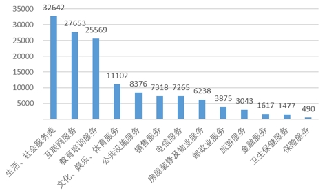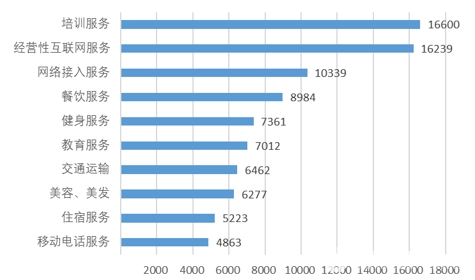根据2021年三季度服务大类投诉数据(如图3、表3所示),其中生活社会服务类、互联网服务、教育培训服务、文化娱乐体育服务与公共设施服务居于服务类投诉量前五位。