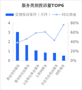 消费者不正当竞争问题诉求主要集中在虚假宣传、网络不正当竞争和商业贿赂等方面。从投诉领域看,主要集中在食品、教育培训服务,合计占比54.20%;从投诉数量看,农资用品、化妆品和食品分别同比增长616.67%、562.54%、541.83%。