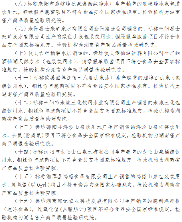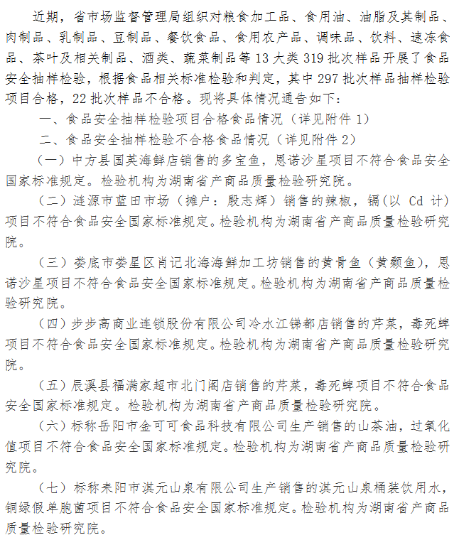 湖南省市场监督管理局关于319批次食品安全抽样检验情况的通告(2021年第25期)