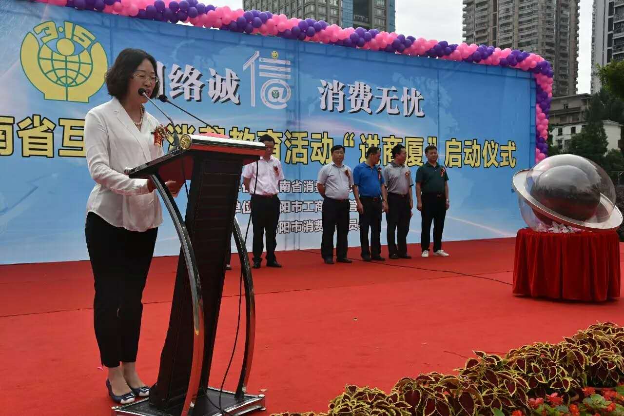 6月22日上午,雁城衡阳莲湖广场人头攒动,锣鼓喧天,由湖南省消费者委员会主办、衡阳市工商行政管理局和衡阳市消费者委员会承办的湖南省互联网消费教育“进商厦”活动启动仪式在这里隆重举行。 衡阳各县市区消委会长、秘书长,衡阳市工商局机关有关科室人员,衡阳市消委会秘书处全体工作人员以及来自衡阳移动、衡阳电信、衡阳联通,有关网络经营企业、快递公司、商场、超市等企业人员共计300余人参加活动。不少消费者在现场参加咨询服务活动。 衡阳市工商行政管理局党组副书记、副局长、衡阳市消费者委员会会长冯建伟在致辞中感谢省消委将湖南省互联网消费教育“进商厦”活动启动仪式安排在衡阳举行,这对推进衡阳市互联网消费教育工作具有十分重要的指导意义。 冯建伟表示,衡阳将以此次活动为契机,精心组织各县市结合本地实际,多渠道、多层次、多形式开展互联网消费教育“五进”活动;以市场巡查动态监管为重点,加强对网络经营主体行为的日常监管,发现问题,及时处理,变事后保护为事前预防;充分发挥各级工商和市场监管部门、消委组织的消费维权行政执法和社会监督“两只手”作用,加强消费教育引导,参与商品和服务的社会监督,维护消费者合法权益。 在启动仪式上,湖南省消费者委员会秘书长吴卫就开展互联网消费教育工作的意义及如何开展互联网消费教育工作发表主旨讲话。 吴卫说,在全省范围内开展互联网消费教育“五进”(进农村、进社区、进学校、进商厦、进企业)活动,是湖南省消费者委员会深化“网络诚信消费无忧”年主题活动的具体行动,通过开展互联网消费教育活动,向消费者普及网络消费知识,帮助消费者树立理性消费观念,防范网络消费陷阱,提高自我保护能力和防范意识;督促经营者诚信经营,积极营造安全无忧的网络消费环境,使“互联网+”为广大消费者带来更多更便利的实惠,促进供给侧结构性改革和经济社会发展。 启动仪式上,中国电信衡阳分公司副总经理康劲代表网络经营单位宣读诚信经营承诺书。随后,20家网络经营单位负责人在承诺书上签名。 启动仪式现场,衡阳市工商局、衡阳市消费者委员会以及有关网络经营企业开展咨询服务活动,并向消费者发放互联网消费知识等宣传资料。 衡阳市人大常委会副主任晏华衡宣布湖南省互联网消费教育“进商厦”活动正式启动。晏华衡、吴卫、冯建伟一起按动活动启动球。