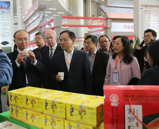 在开幕式“点亮湖南新地标”环节,毛金生、曹冬根和段志雄共同点亮2019年湖南新增的溆浦瑶茶、汨罗粽子和津市茶油、溆浦蜜桔、古丈红、武冈青钱柳、湘乡水府茶等7件地理标志。