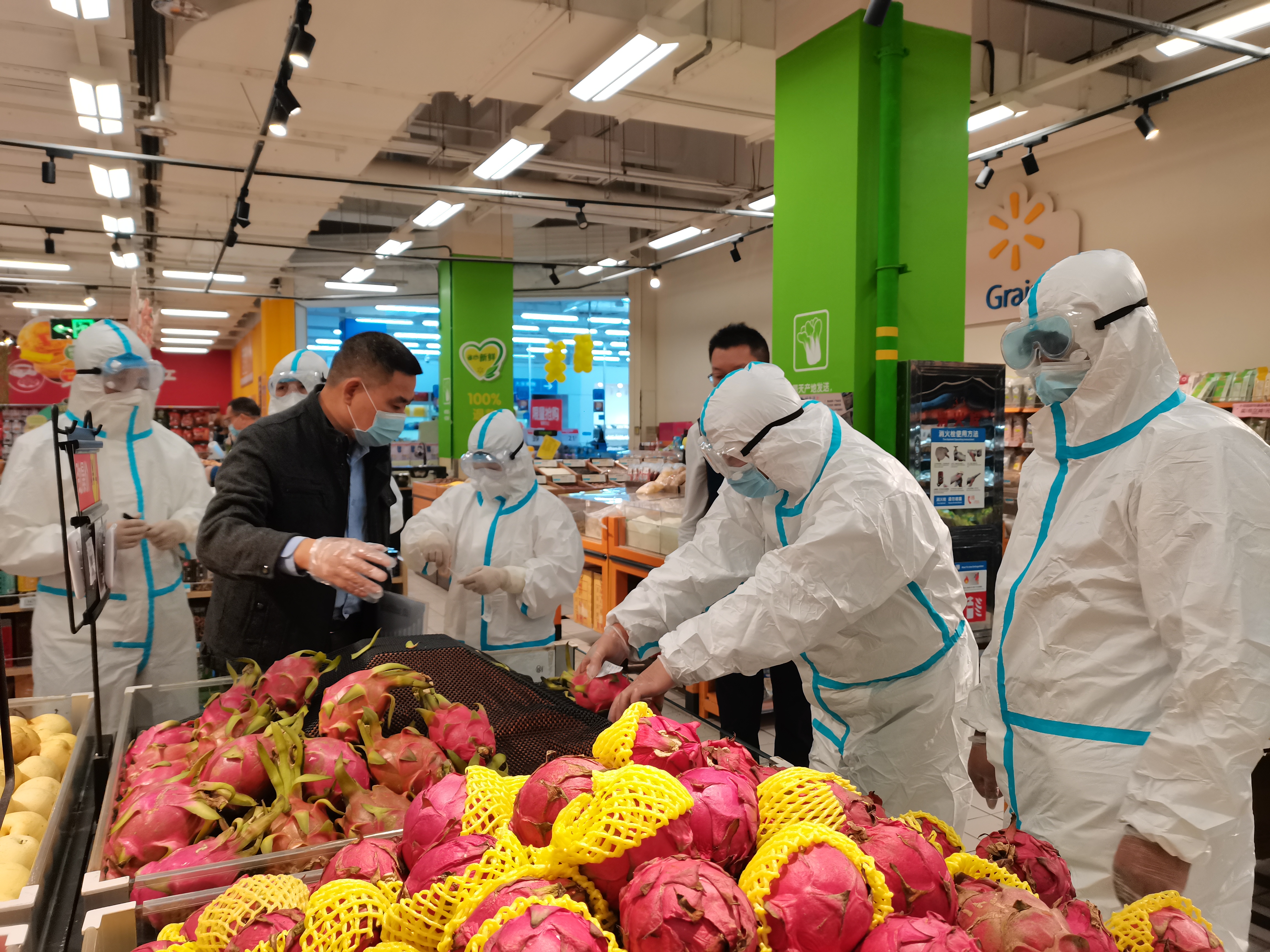 11月13日,由邵阳市市场监管局牵头组织,联合双清区市场监管局、北塔区市场监管局、双清区疾控中心、双清区人民医院开展的进口冷链食品疫情防控应急实战演练在双清区沃尔玛超市举行。 根据疫情防控应急演练设定,11月13日上午8点,省市场监管局推送了大连冷库涉疫水果线索,其中两批进口冷链火龙果已销往沃尔玛超市。邵阳市新冠疫情防控指挥部接到报告后,立即决定启动应急处置响应。确定沃尔玛超市疫点后,市区两级市场监管部门、疾控中心迅速前往疫点开展处置工作。根据调度,现场应急处置人员从应急管控、食品流调、食品溯源三方面同时开展处置工作。市场监管部门将沃尔玛超市内进口冷链问题食品封存,并督促市场主办方严格落实“日巡查、日消毒、日清理”制度。疾控中心牵头对经营区及周边进行环境消毒。消毒完成后,市疾控中心对重点区域再次采样检测,评估消毒效果。 上午11时,应急实战演练结束,现场处置涉疫进口火龙果24公斤(已全部下架封存),涉疫物品、环境、场所已消杀,核酸检测采样30份(其中人员采样23份,物品采样2份、环境采样5份),收集物品检验检疫证明、消杀证明、核酸检测报告、“湘冷链”已录入证明、物品去向(销售)证明等资料,并制作询问笔录、现场检查笔录。下午6点,邵阳市市场监管局收到双清区人民医院报告,23份人员采样、2份物品采样、5份环境采样共计30份核酸检测结果全部为阴性。 本次现场应急演练检验了市区两级市场监管部门市场疫情防控联防联控机制反应、相关成员单位预案执行和应急处置能力,锻炼了队伍,实现了“及时发现、快速处置、精准管控、有效救治”的疫情防控应急演练目标。(供稿:邵阳市市场监管局)